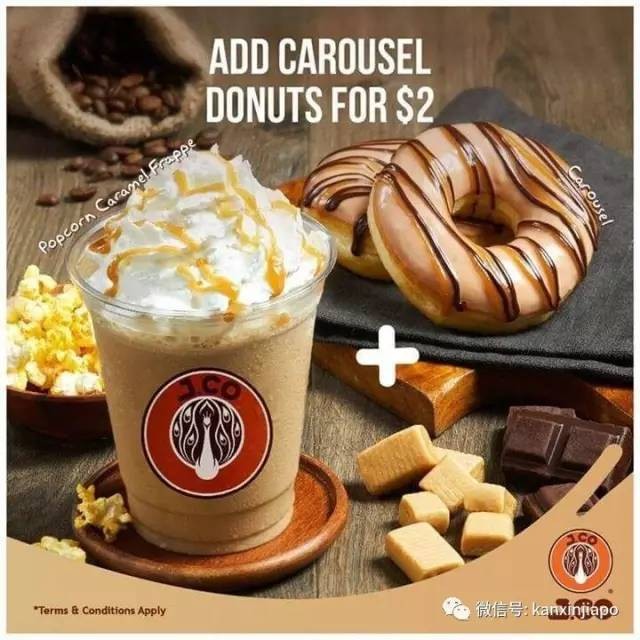 购买焦糖爆米花Frappe,即可以2新币的价格购买2个旋转木马甜甜圈