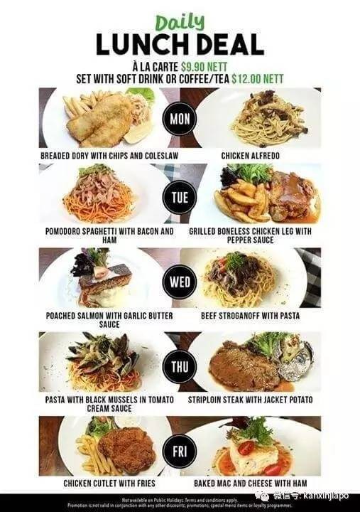 每天不同的选项,主食仅售9.9新币,加饮料仅售12新币