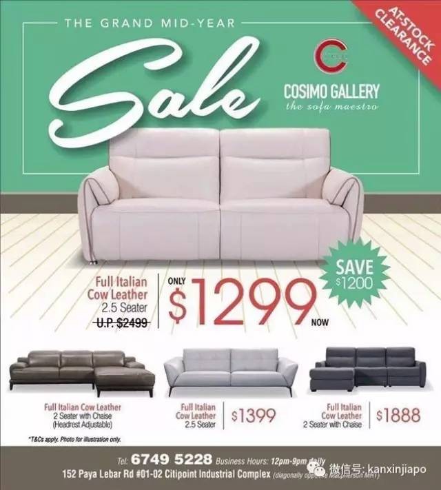 原价8990新币的沙发仅售4495新币,原价4480新币的咖啡桌仅售2280新币