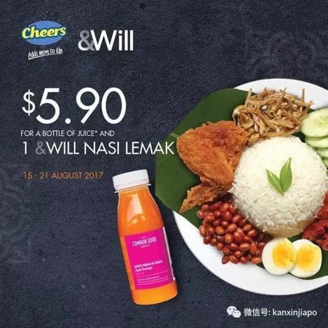 购买一瓶果汁和一份&Will椰浆饭套餐,只要5.9新币!