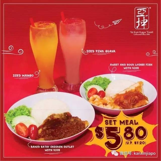 亚坤套餐优惠两种不同选项的主食,配上饮料,都只要5.8~有酸甜荔枝鱼和沙爹鸡排的选项~