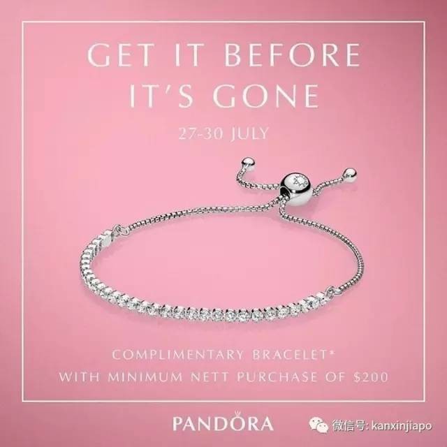 在Pandora店里消费满200新币,即可获赠价值99新币的银手链一条