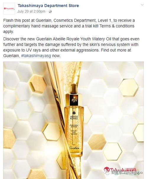 出示以下截图,去高岛屋娇兰柜台即可享受一次免费的手部按摩和一个试用装