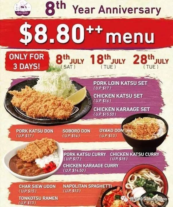 7月8日、7月18日、7月28日三日优惠,几乎所有招牌炸猪排都有特别优惠~