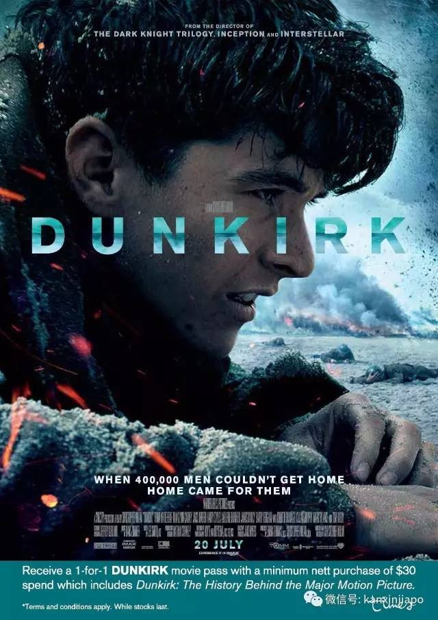 购买《敦刻尔克大撤退》电影书,并且消费超过30新币,就可以获得一张免费电影票!