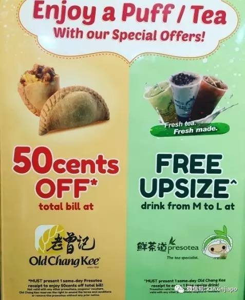 在同一天消费老曾记和鲜茶道,就可以在老曾记获得5毛优惠,在鲜茶道获得免费升杯