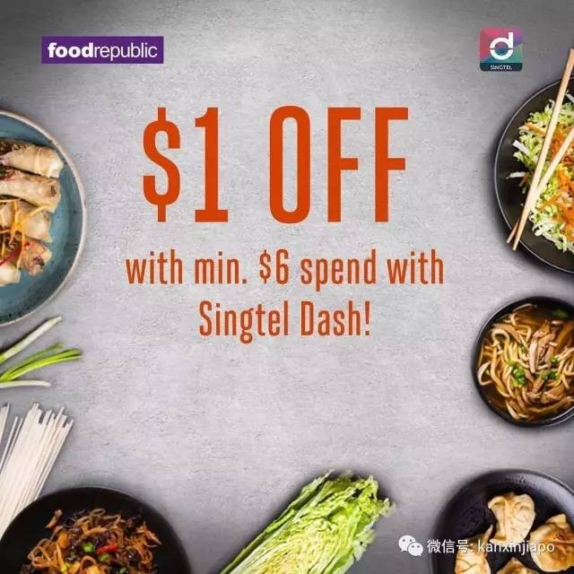 在Food Republic 消费满6新币,使用Singtel Dash付款,就可以获得1新币优惠