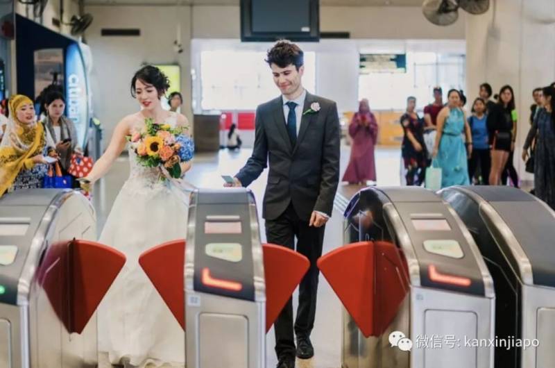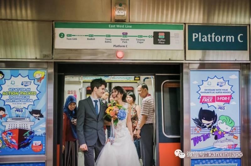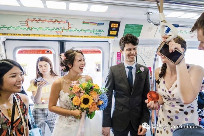 新加坡有一对新人,打破了专车接送新郎新娘的传统,选择搭地铁从家里到婚宴地点!
