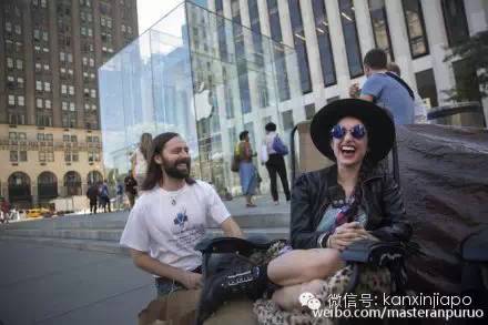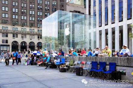 安普若-外号安校长:纽约第五大道上的苹果专卖店前等iPhone 6的人们。(转网上照片)