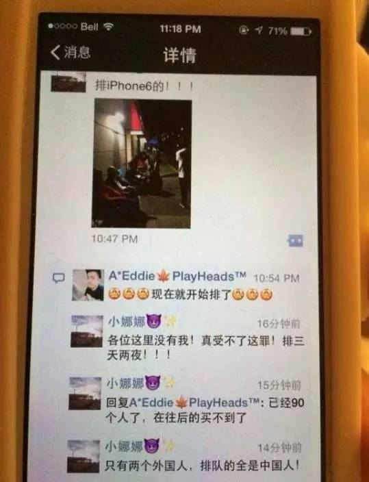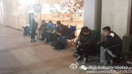 Bella:明早8点开始销售的iPhone 6,昨天就开始有人排队了,更狠的是那哥们自带凉席……
