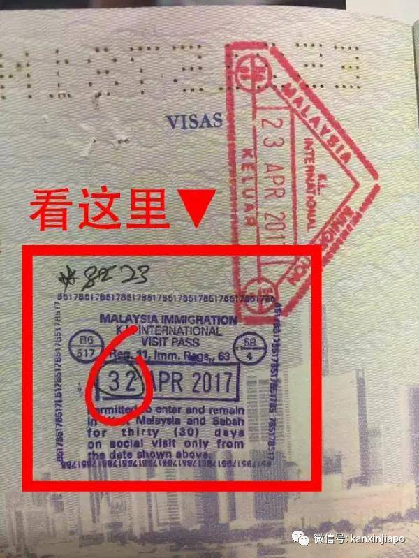 之前有网友提到过自己入境的时候,马来西亚关卡人员盖出了4月32号!