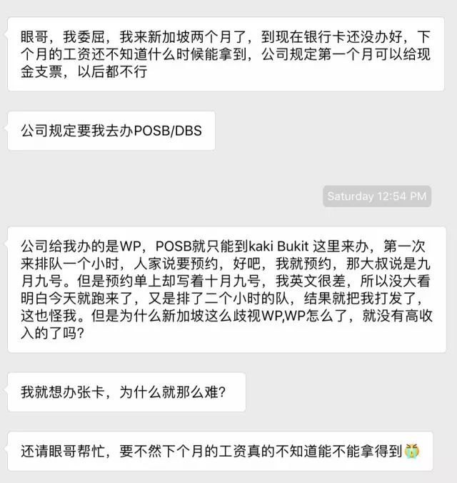 看了这位网友的问题,我们才发现,在新加坡持WP工作准证的网友,在银行开户是个问题。