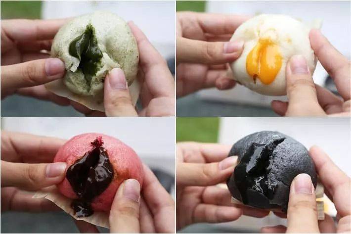 还有流心软包,黑芝麻,抹茶,榴梿等口味,一口咬下去,内陷就要爆浆而出。