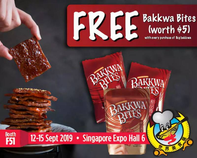 现场购买一公斤的肉干,有赠送价值S$5的肉干便携装哦。快来展位F51看看吧。