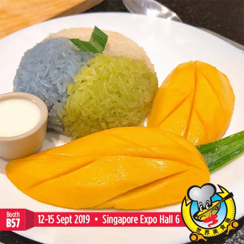它家的芒果糯米饭很好吃,香浓软糯的糯米,配着甜美的芒果。糯米饭完全没有人造成分,颜色的多样性,只用天然成分染色,如蝴蝶豌豆花提取物。