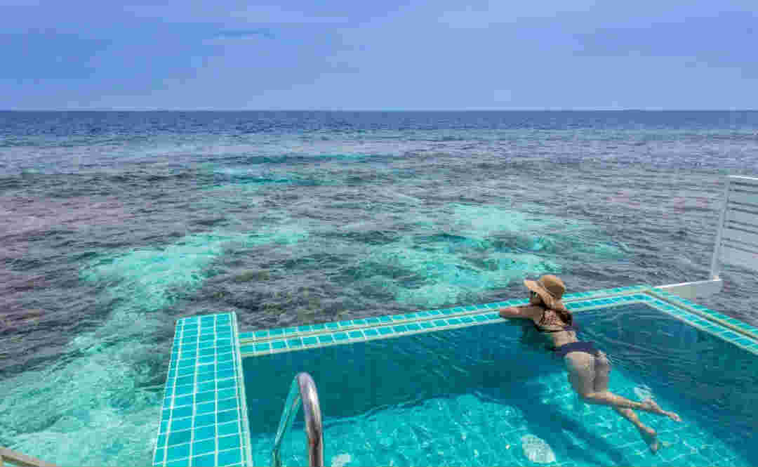 2.拥有马尔代夫最大的无边泳池,面积足有 750 平米,