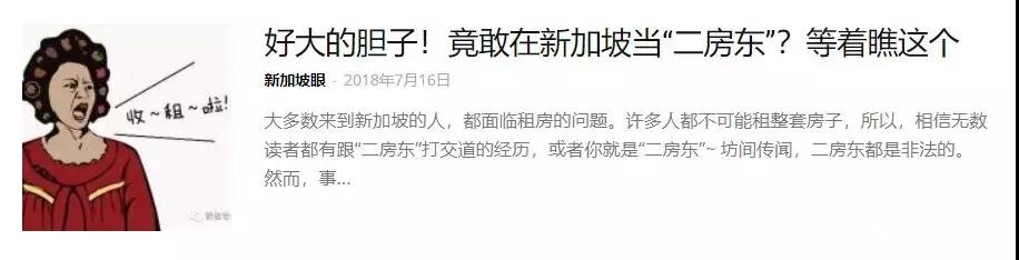 那些活跃在组屋中的“二房东”就像“二房”一样,一旦被举报,就呵呵了……