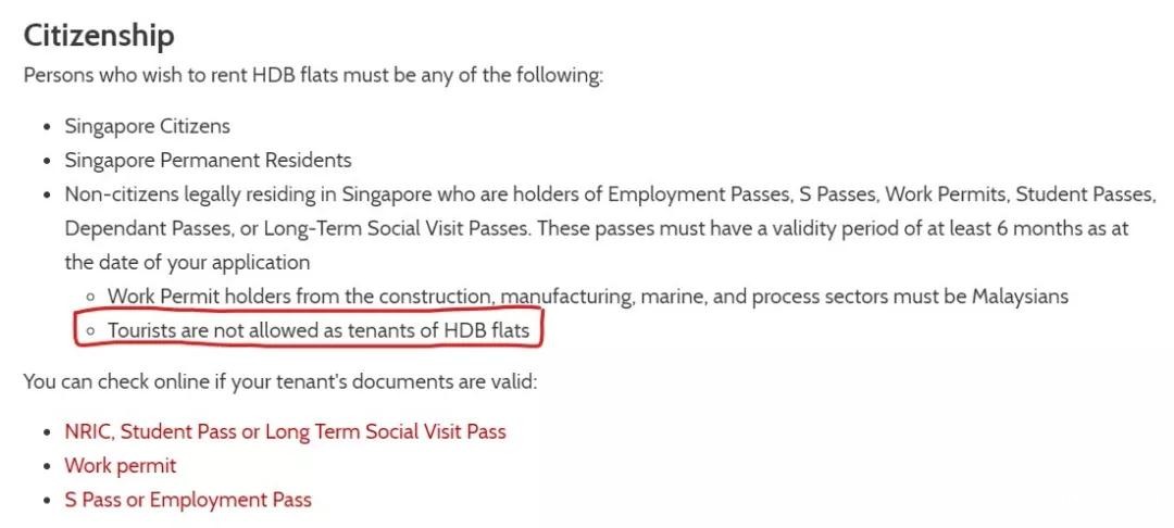 所以,租客必须持有长期签证,旅游签证不可以租住组屋!