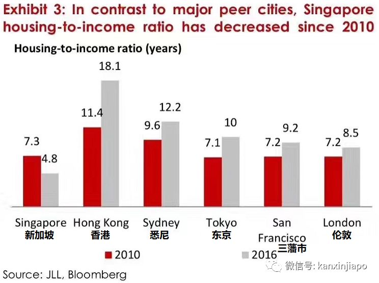根据JLL和Bloomberg的数据,2010年,在新加坡平均需要花7.3年的时间买一间房子,但现在只需要花4.8年。