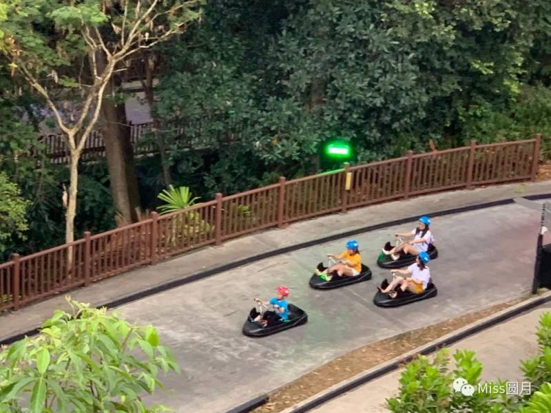 圣淘沙岛上的这个貌似建于2005年,一开始只有两条轨道,分别是Jungle Trail(628米)和Dragon Trail(688米),近年来又新建了Kupu Kupu Trail(638米)和Expedition Trail (658米)。四条轨道我们都滑了,明显感觉Jungle Trail路程短、弯道少,应该是比较适合新手的轨道,而Expedition Trail弯道特别多,滑起来超级过瘾哇~!