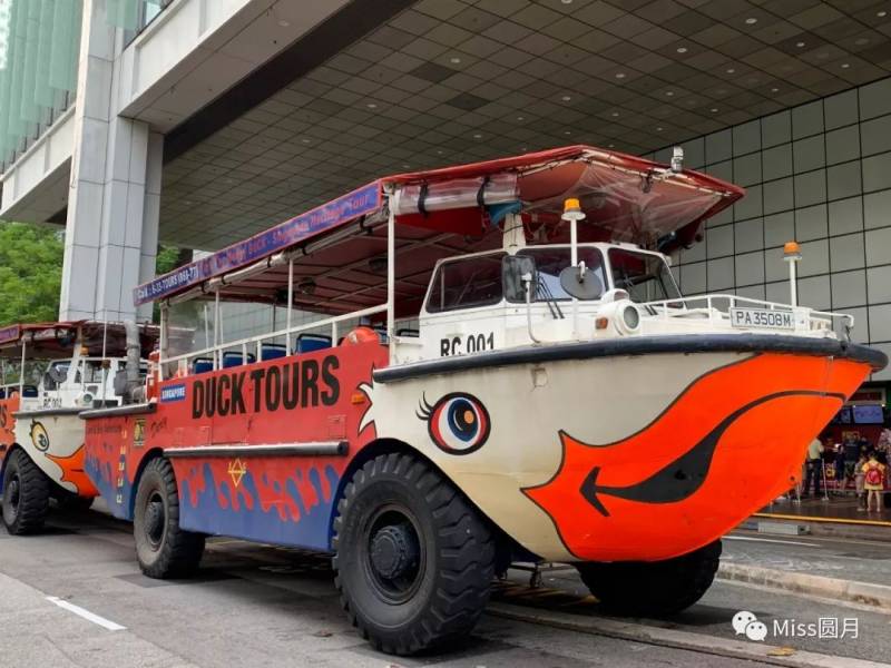 鸭子船是由越战时期的水陆两用战车改造而来,每艘船都有自己的名字。项目的起点和终点都在新达城Suntec City,整个行驶过程大概一个小时,先是在水里,然后在陆上。途中会看到所有滨海湾的景点,包括滨海湾花园、摩天轮、鱼尾狮、金沙酒店、双螺旋桥、艺术科学博物馆和新加坡美术馆等等。这个项目比较适合初次造访新加坡的人,以后再来的话,我们应该不会再玩第二次了