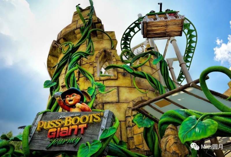 Conrad最喜欢的是一个叫鞋猫剑客历险记(Puss In Boots Giant Journey)的悬吊飞车,快结束的时候拉着我刷了三四遍,直到人家要关门了还不肯走。