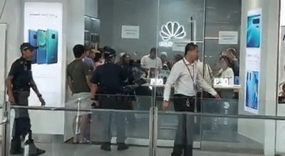 新加坡大妈华为店“砸场子”,三个警察都拉不住!