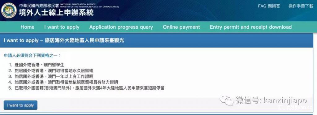 ▲(大通证和入台证)而长期旅居港澳以及海外的中国大陆居民,如果经由港澳或海外地区直接前往台湾地区,则不需要申请“大通证”,手持有效“入台证”即可。今天大陆禁止台湾自由行新闻一出,新加坡眼立即查证了入台证申请官网,发现旅居海外大陆居民的自由行申请仍是开通的。