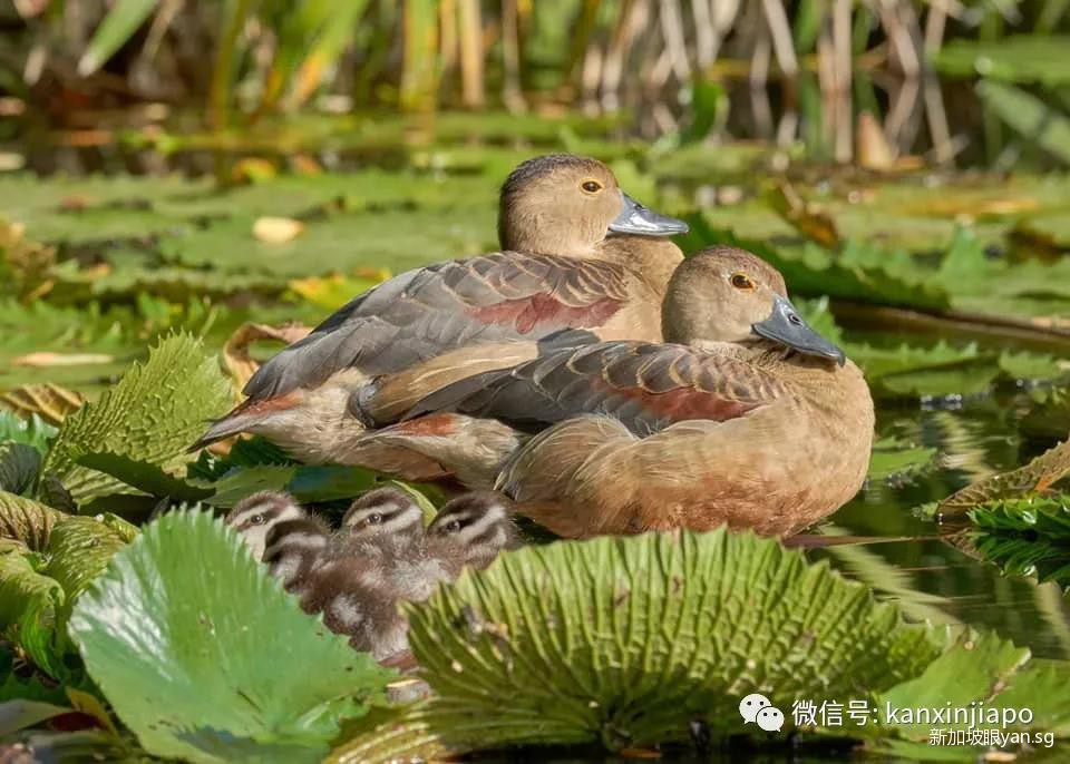 ▲以上两张图源:Meilin Khoo新加坡滨海湾花园的工作人员专门为这一家子搭建了一个漂浮的木质平台,甚至重新安置了蛇头鱼(Snakehead fish),因为蛇头鱼是具有侵略性的外来物种,可能会威胁到树鸭家族。