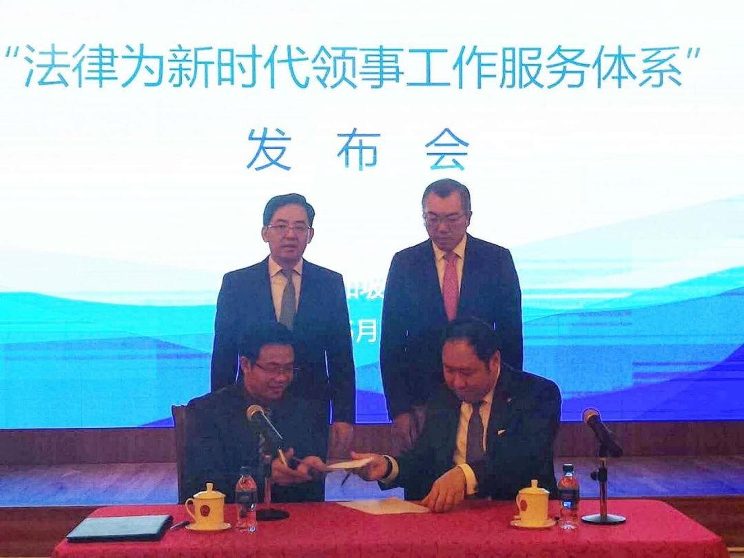 今天,在中国驻新加坡大使馆召开了“法律为新时代领事工作服务体系”发布会。