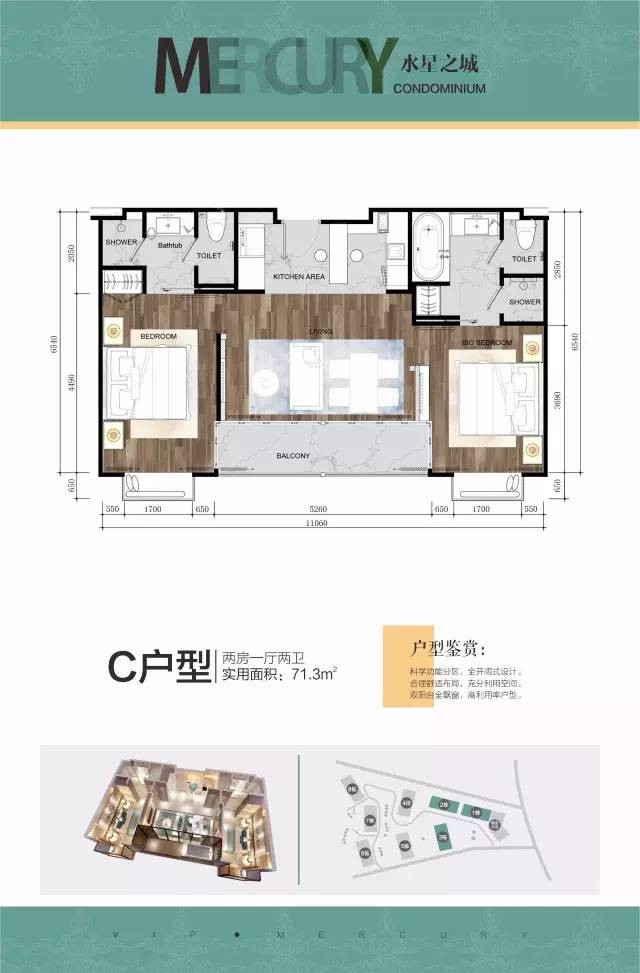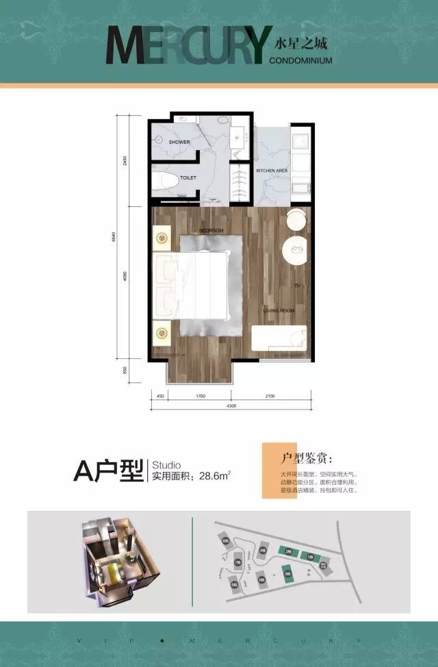 项目房型:Studio28.6㎡,一房一厅35.4㎡,两房一厅71.3㎡