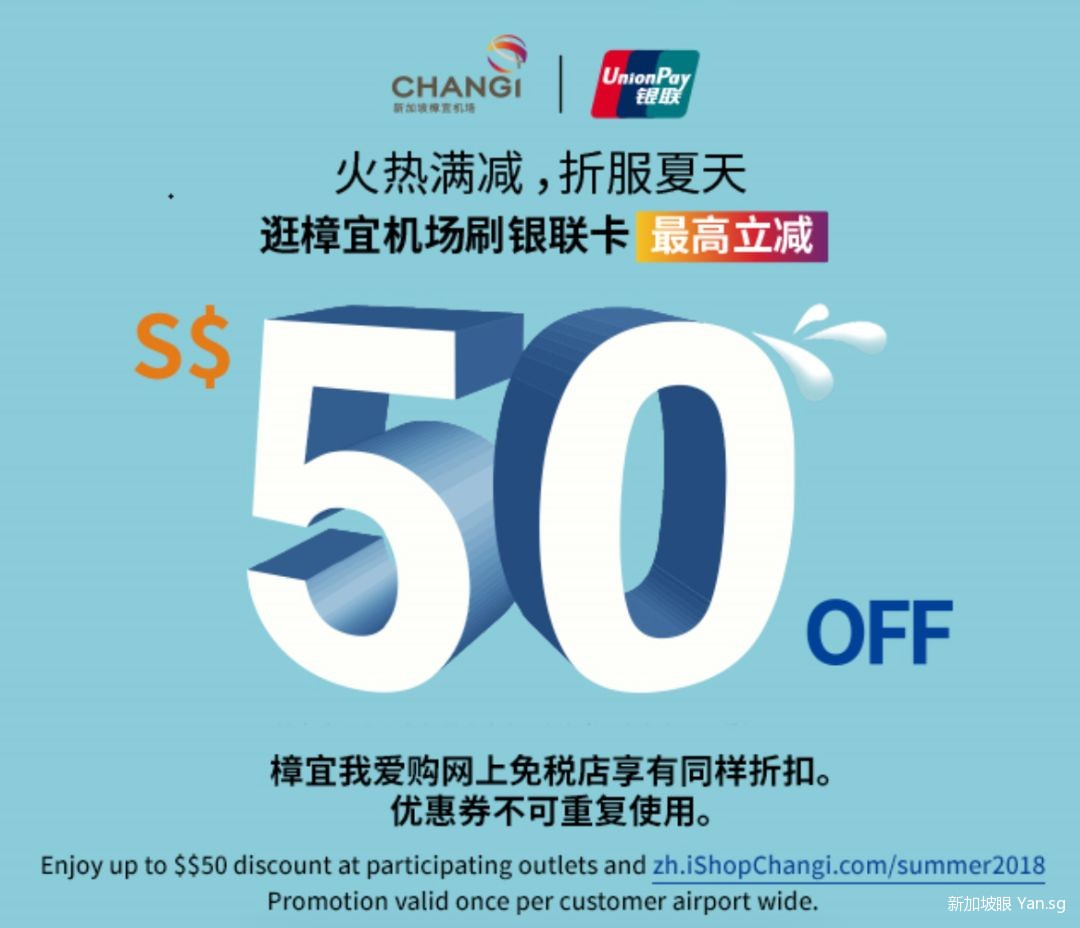 使用数字62开头的银联卡用户,可以享受满S$100减S$8,满S$500减S$50的超强折扣~