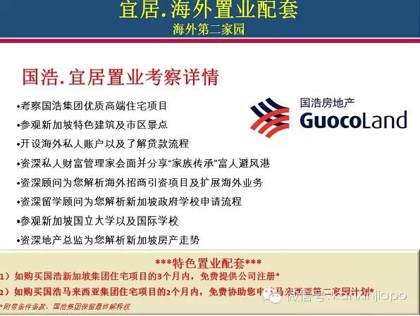 据悉,新加坡国浩集团最近还将组织一系列新马看房团,邀请有意向的客户到新加坡和马来西亚吉隆坡实地考察意向房产项目,此外,在10月大假来临前夕,国浩置业中国组推出了一站式定制考察行,如有兴趣的客户,可以写邮件到[email protected],或加个人微信号xinjiapoyan18咨询。