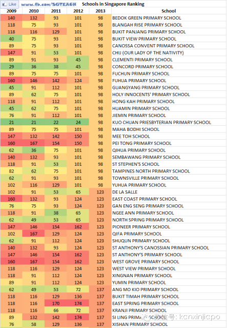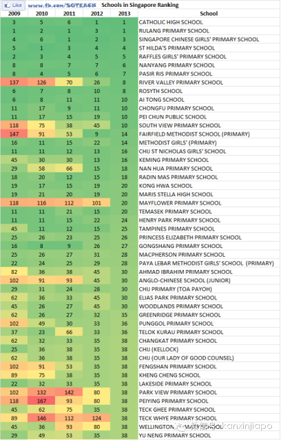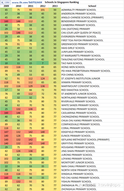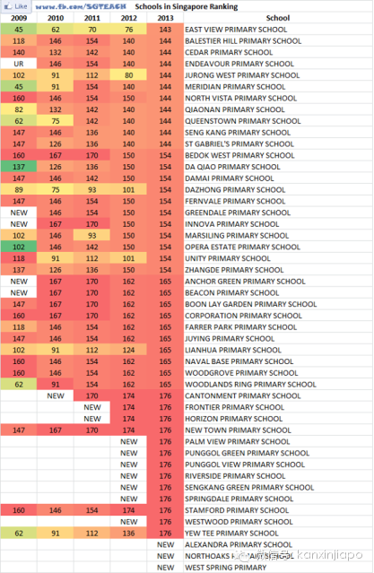 新加坡小学排名(点击图片可放大查看,可同时查看08-13年五年内排名走势参考):