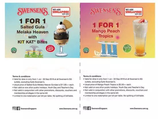 SingaFour馅饼买三送一,买任何饮料,购买SingaFour馅饼可扣$0.50