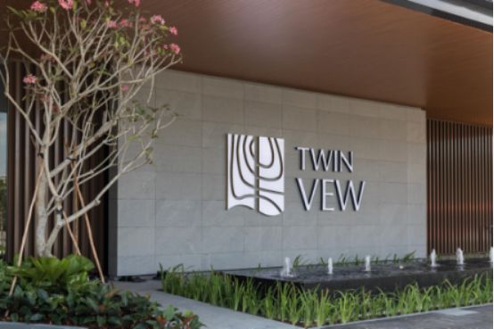 接着就看到大大的项目logo啦!之前第一次介绍这个项目时,有网友给我们留言,说公寓的名字一般都是view,Twin VEW一定是搞错了?No,请看正版(VEW到底神马意思,后文详解):