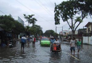 因为雅加达是全球地面沉降速度最快的城市!雅加达北部在这10年里下降了2.5米,并且还在以每年1至15厘米的速度在下沉。按这个速度,不久的将来几乎半个城市都会位于海平面以下。