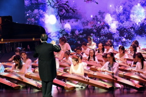 第二首乐曲古筝简版《梁祝》,主办方安排了一段现场对《梁祝》原创作曲家何占豪先生的采访,何占豪先生以真实质朴、风趣生动的表达方式,在现场此起彼伏的阵阵掌声与笑声中,将全场观众带入到他60年前创作《梁祝》的芬芳年华中…。当帷幕拉开,在观众的惊叹声中60位新加坡与中国的古筝专业与非专业表演者跃然眼前,在何占豪先生的倾情指挥下,30位新加坡表演者、30位中国表演者,从9岁到86岁携手共同演绎经典的旋律,在唯美贴切的现场背景画面中,为观众呈现了新颖感人的视听感受,新中文化的界限也在琴弦的共鸣中消融,情感在传递中拉近。