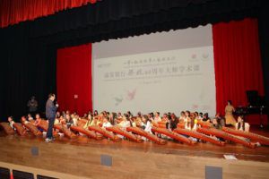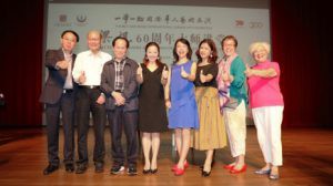 “梁祝60周年大师讲堂”(左1中国文化中心主任肖江华,左2新加坡史学家柯木林,左3何占豪,左4新加坡华乐学院院长徐宜平,右1、2、3、4当天听众)