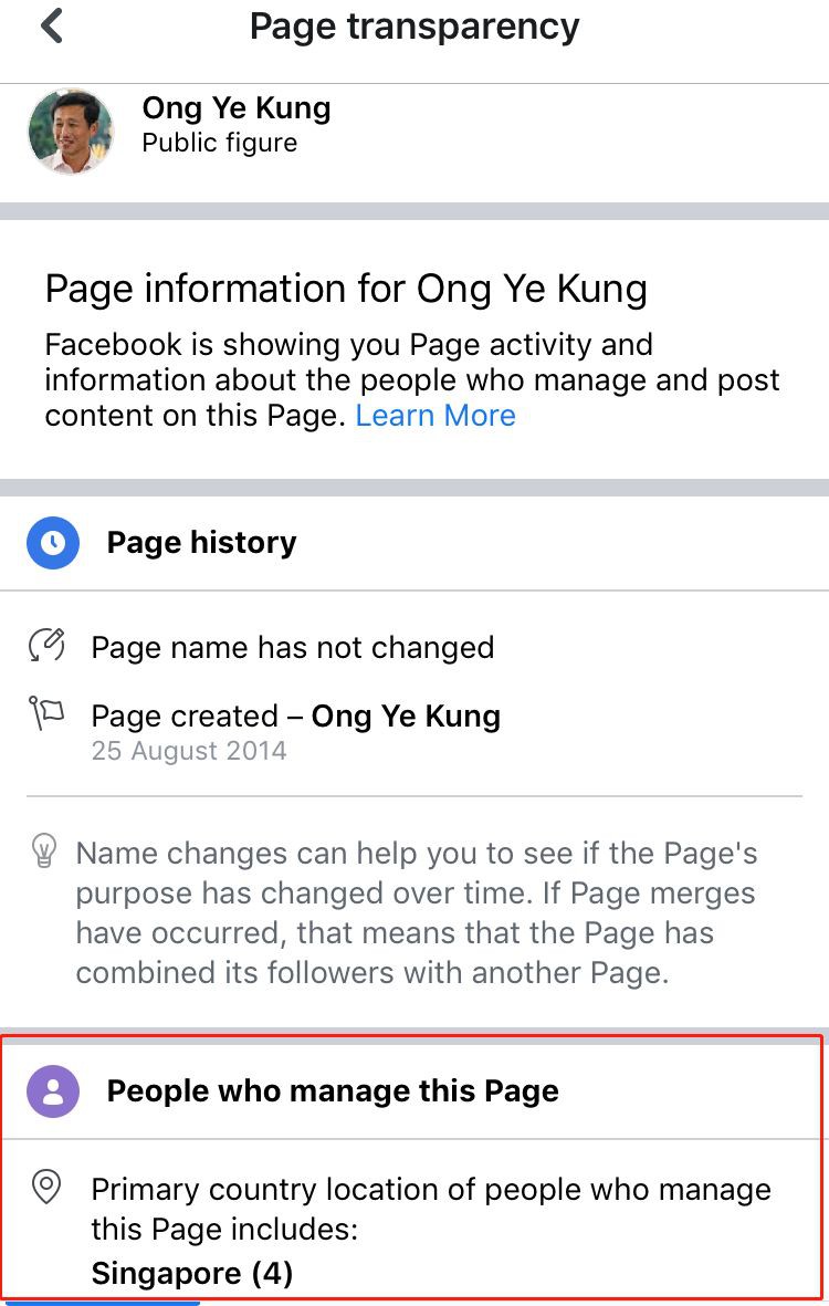 没想到这工具可以顺带查到一个脸书账号后面有多少管理人员在运营。好奇心大起,你说新加坡各大部长脸书都有多少人在运营咧?