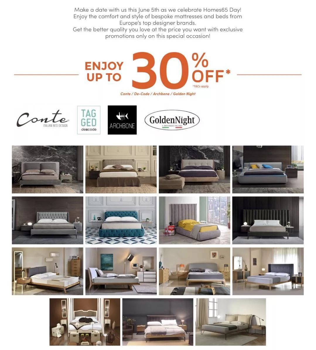 Homes65店庆打7折!想要换新床铺和床垫的人可以把握住这个机会~
