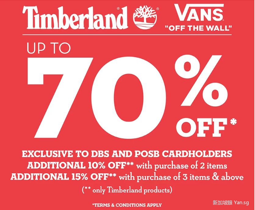 买两件Timberland再打九折,买三件Timberland及以上再打八五折!