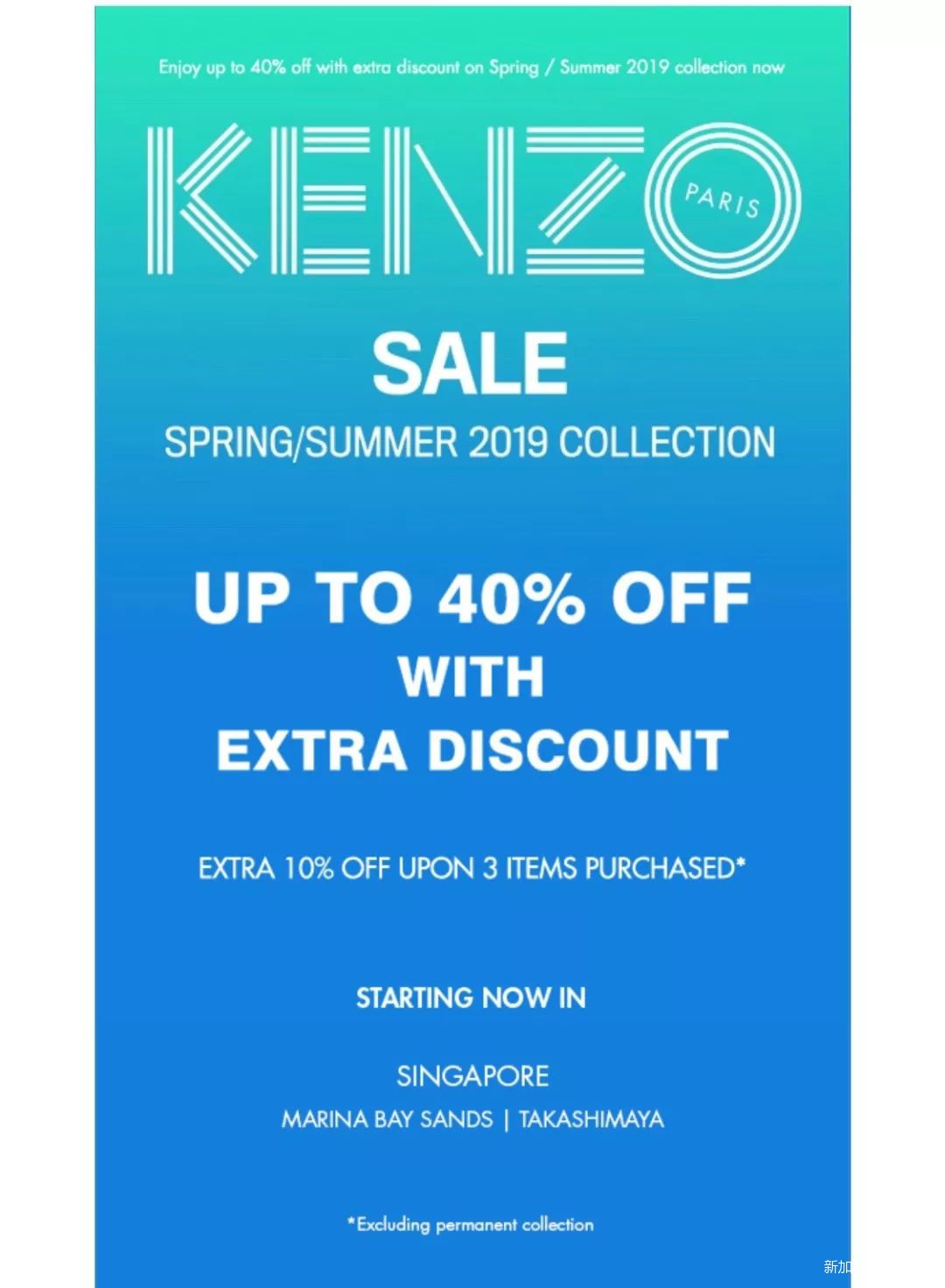 Kenzo大促,低至6折!购买三件以上再打九折!