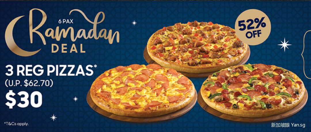 必胜客pizza活动,3份pizza仅30新币,相当于半价!