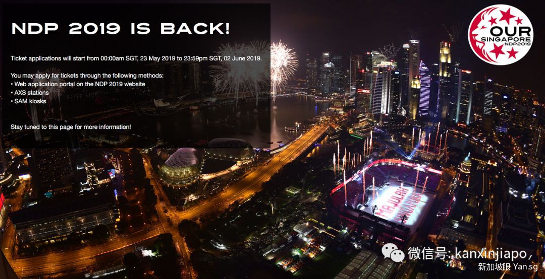 想要申请2019年新加坡国庆庆典票,点击这里。同时小伙伴也可以通过AXS和SAM机器提交申请。