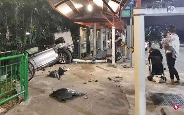 (新加坡9日讯)夫妻带着10个月大的宝宝外出,岂料轿车突然失控冲入巴士站,撞倒一名候车男子,车上的妇女和宝宝也受轻伤。这起车祸发生于本月7日约11时40分,在惹兰红山一带布莱路(Blair Road)和甘榜峇鲁路(Kampong Bahru Road)交界处的巴士站发生。