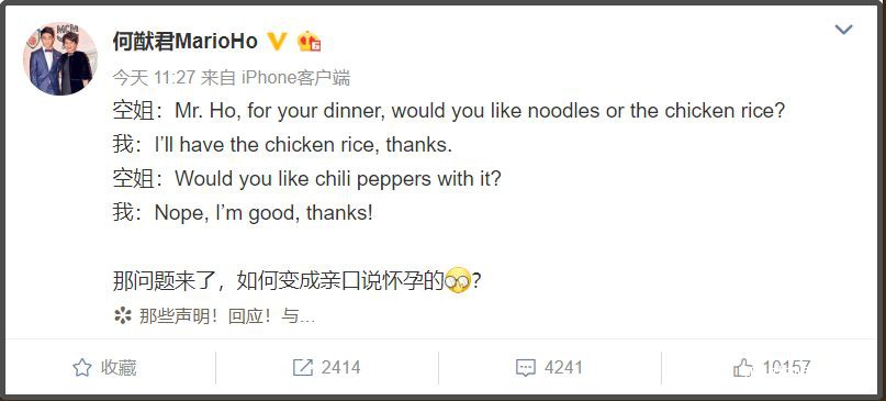 不过对此,何猷君发微博还原了下和空姐的对话,澄清奚梦瑶怀孕一事儿简直就是无中生有。