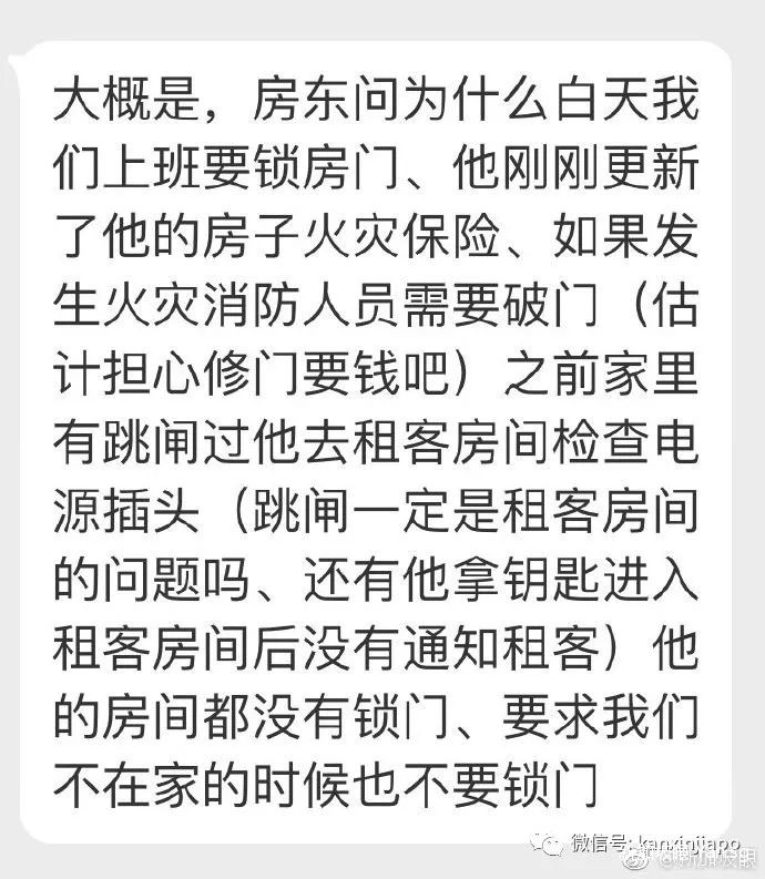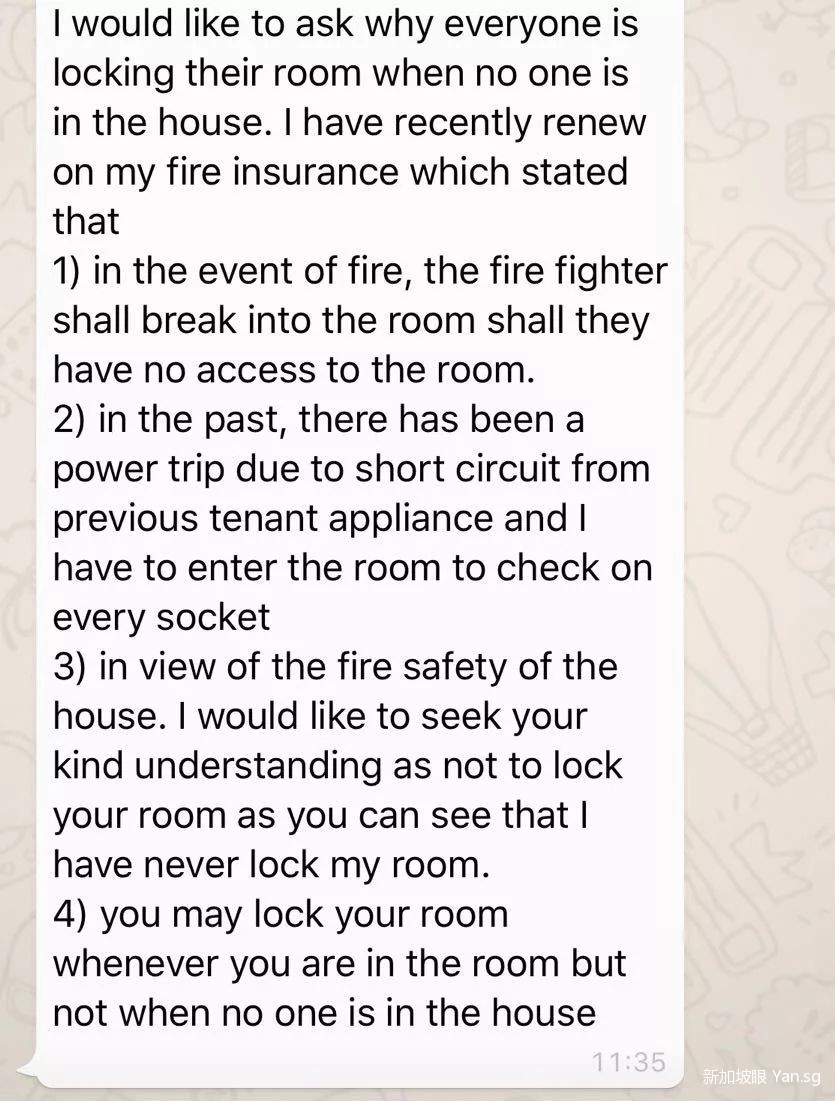 新加坡眼收到网友求助:“房东通知所有房客,不在家的时候不要锁门。房东这样的要求合理吗?”