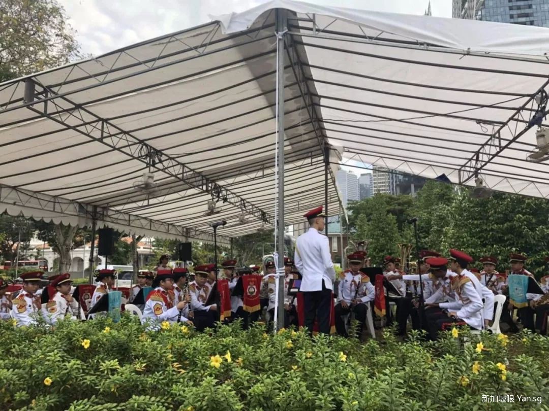 纪念活动上,不仅有政府官员和商界人士的参与,军方也派出仪仗队和军乐队参加。
