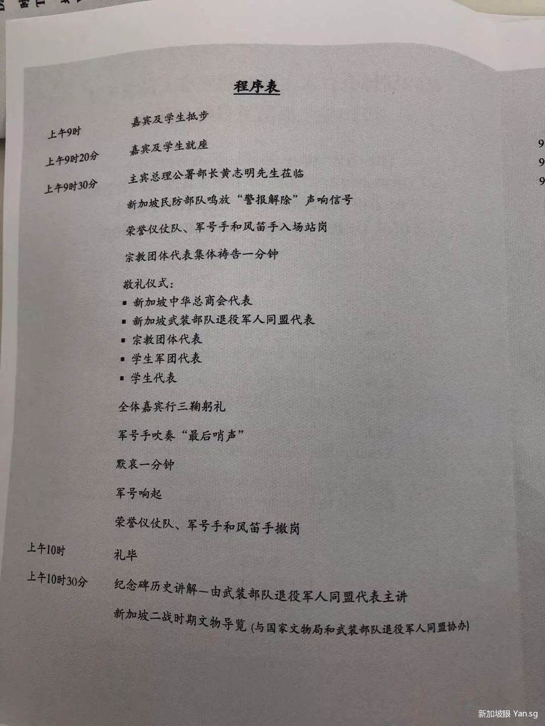 为了牢记这一天,新加坡政教界、商界、军方等社会人士都参加了纪念活动。